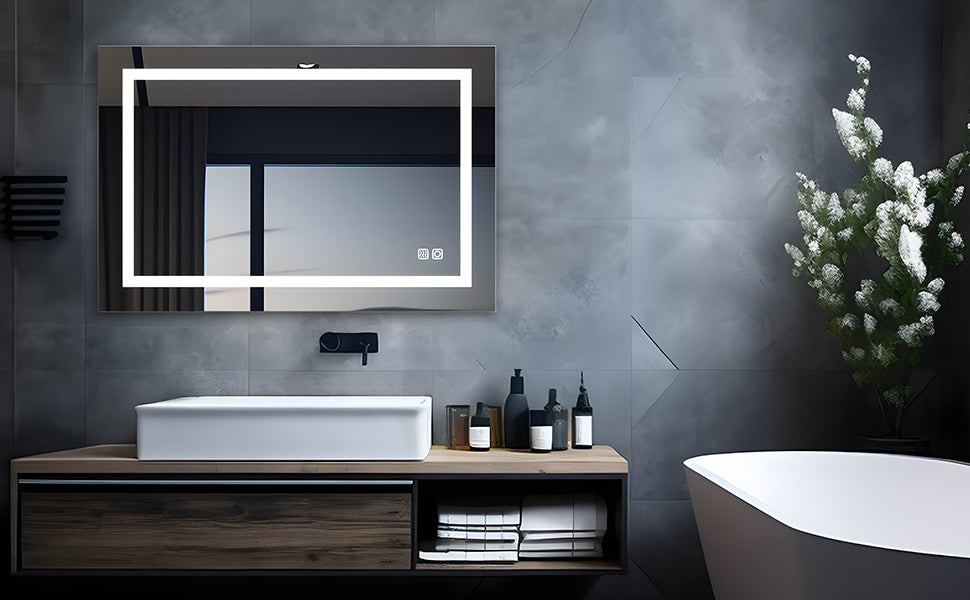 Badspiegel mit Kaltweiß LED Beleuchtung Touch Wandspiegel