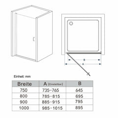 - • Achtung: Bitte messen Sie nach, ob diese Duschabtrennung in den vorgesehenen Raum passt
