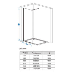 Duschabtrennung walk in Duschwand Dusche Duschtrennwand 70-120x195cm 8mm NANO Glas CD