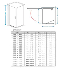 - • 900 x 900mm (einstellbar: 885-915x890-900mm)