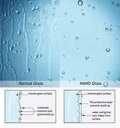 - Die Beschichtung auf NANO schützt das Glas langfristig vor Verschmutzung, laufendes Wasser perlt einfach ab wie Lotuseffekt.