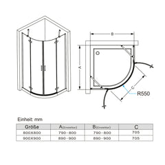 Duschkabine Runddusche Duschabtrennung Echtglas Viertelkreis 90x90 80x80 100X100 JAS