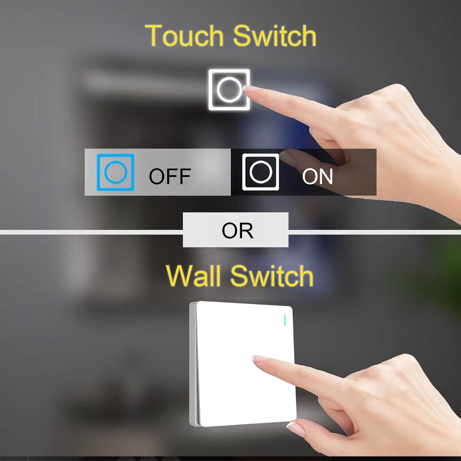 - Zwei Schalteroptionen: Touch-Schalter / Wand-Schalter
