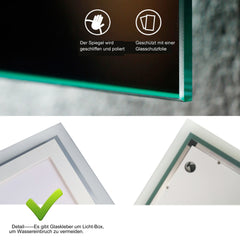 - • Alulegierung+PVC-Licht-Box: LED-Spiegel anschlussfertig für Stromanschluss.