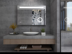 LED Badspiegel mit Beleuchtung Wandspiegel 3 Lichtfarbe Beschlagfrei Lichtspiegel Badezimmerspiegel Touch Uhr Spiegel 80x60 100x70 120x80cm MIH
