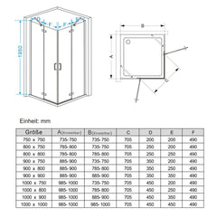 - • 900x900mm(einstellbar: 885-900x885-900mm)